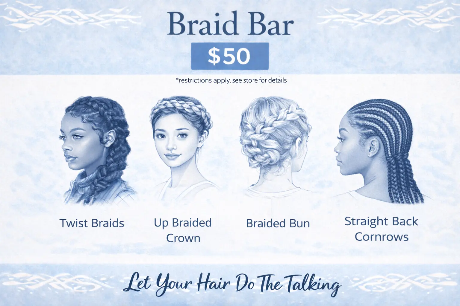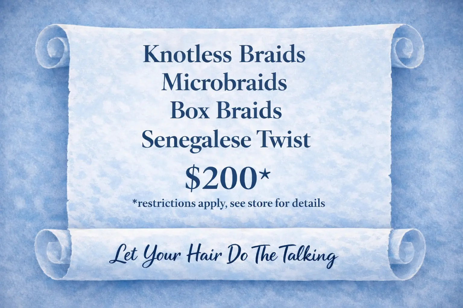 Offer the premier destination for hair braiding in Houston, providing exceptional artistry, comfort, and professionalism — with a clear, fixed-rate pricing structure based on service time to ensure fairness, transparency, and value for every client.